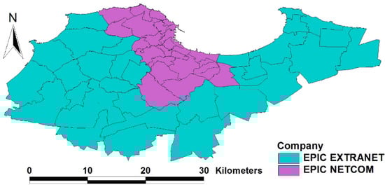 Figure 2 displays the companies responsible for waste management in each commune within the area analyzed in the study.
