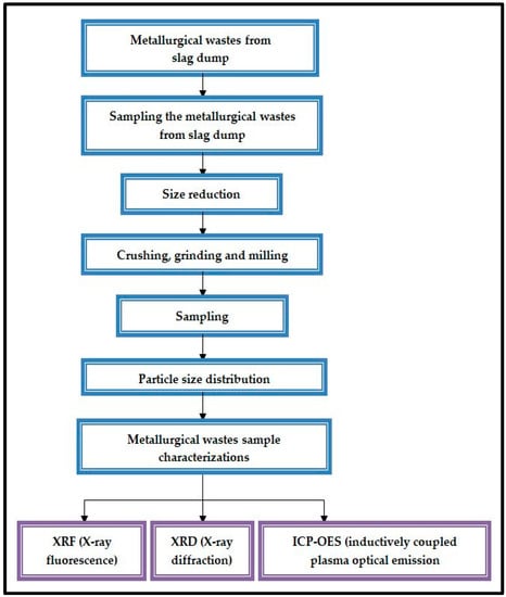 The metallurgical industry is one of the most significant sources of waste. In the metallurgical industry, the following types of wastes are generated: sintering dust and sludge from the sintering process; blast furnace dust and sludge from the blast furnace process; steelmaking dust and sludge from steel production in converters; steelmaking dust from steel production in electric arc furnaces; blast furnace and steelmaking slags; ceramic debris; sludges from wet dedusting of burned gases and melting losses [1,2,3,4,5]. A vast amount of metallurgical waste is discarded due to the rapid growth of several industrial sectors. Safe disposal of these metallurgical wastes is vital as they can cause severe threats to ecosystems and quality of life and deteriorate critical natural resources, predominantly water and soil [6]. Knowledge about the characteristics of these wastes helps us to find a logical way for the recycling or landfilling of them.