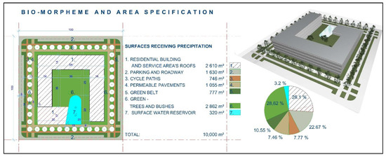 - comparing the findings with the results of a reference unit. Checking the potential of the Bio-Morpheme complex solutions, by which the rationalization of water management has led to lower demand for water from the municipal water supply system and the amount of sewage produced, accompanied by introducing an open water reservoir into its urban interior layout [34].
