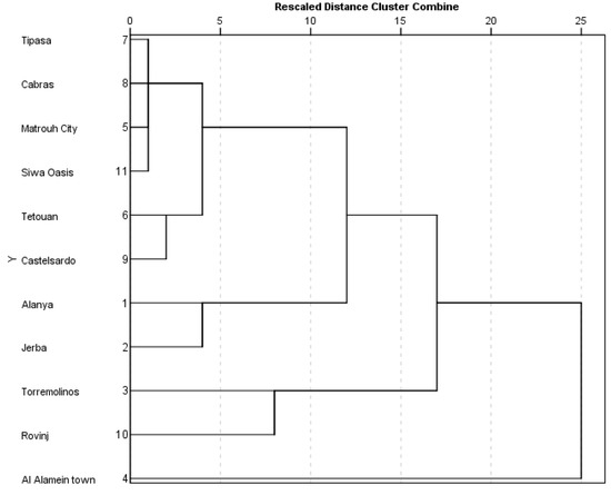 The first distinctive cluster includes the destinations of Tipasa, Cabras, Matrouh city and Siwa Oasis, because they are all areas with negative scores for all factors. In other words, they are all areas with low environmental impact and resource stress and low economic and social performance. This group could be further extended to include the town of Tetouan. Therefore, this cluster may be branded the cluster of “destinations with low impacts”.