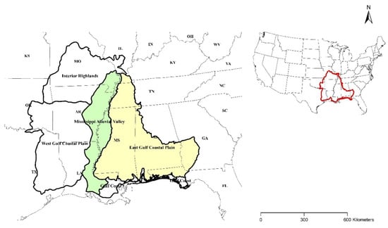 - Oswalt, S.N. Forest Resources of the Lower Mississippi Alluvial Valley; U.S. Forest Service: Knoxville, TN, USA, 2013.