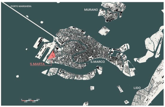 The Ex-Italgas Santa Marta area (81,232 m2) is located on the Dorsoduro Island, namely the southwestern area of Venice inside the Santa Marta District (Figure 2).
