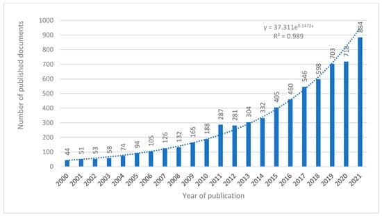 Biomass as a biofuel is currently an interesting topic for scientific researchers. The number of scientific articles in many fields has increased exponentially in recent years, directly affecting the changing behavior of scientific research []. Moreover, a possible conclusion is that the increase of documents reveals the change in terms of scientific knowledge in a particular field. Moreover, the rising number of publications is indicative of the rise in the level of importance of a specific area.