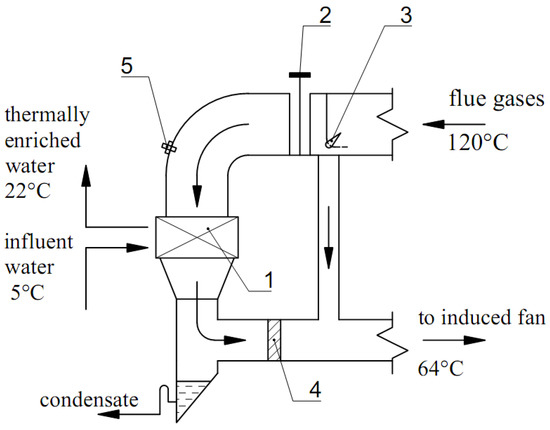 Consider an installation implementing a method of absorption of flue gases in a contact heat exchanger with subsequent heating (Figure 4).