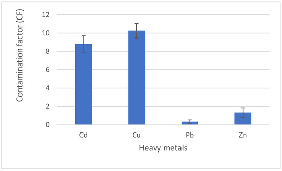 Contamination factor of different heavy metals from industrial soil. Bars indicate standard errors of the mean.