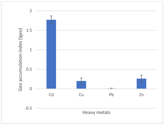 Geo accumulations of different heavy metals from industrial soil. Bars indicate standard errors of the mean.