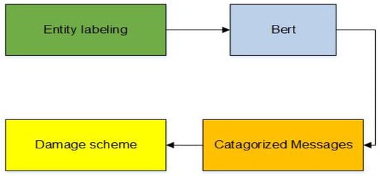 26]. The Bert model improves the performance of text classification through entity embedding, so it can identify tweets and generate corresponding damage reports. Finally, we classify the damage reports into corresponding topics.