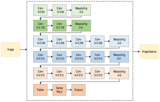 The structure of the image feature extraction model based on Vgg-16 is illustrated in