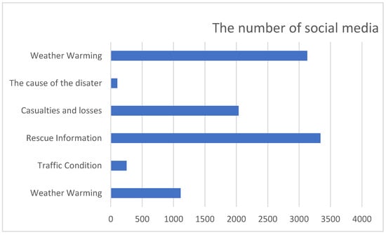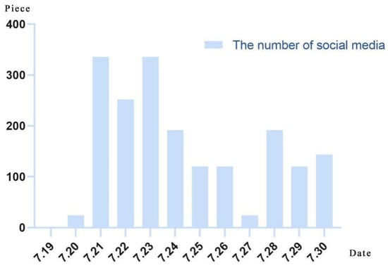 Figure 6, the number of microblogs started to rise significantly on 20 July in response to the increasing severity of the forms of flooding; the mobile communication network of the province was fully restored and the supply of water was restored in most areas starting on 25 July. Thus, the public concern for heavy rains in Henan gradually declined as typhoon “fireworks” on 27 July affected Henan; as a result, the number of microblogs showed an obvious upward trend. Thus, the temporal trend of microblog data largely coincides with the real-time occurrence of the event, suggesting that Sina’s original information on microblogs has usage value when a major emergency occurs.