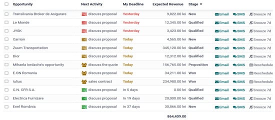 - Wu, J.Y.; Chen, L.T. Odoo ERP Business Intelligence Tool for a Small Medium Enterprise: A Scenario Case Study. In Proceedings of the 11th International Conference on e-Education, e-Business, e-Management and e-Learning, Osaka, Japan, 10–12 January 2020. [Google Scholar] [CrossRef]
