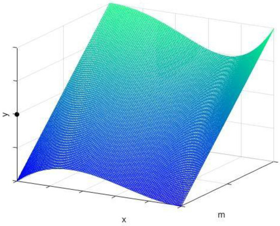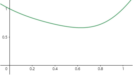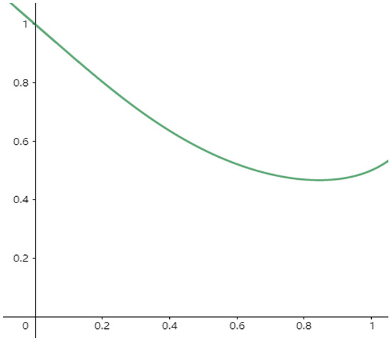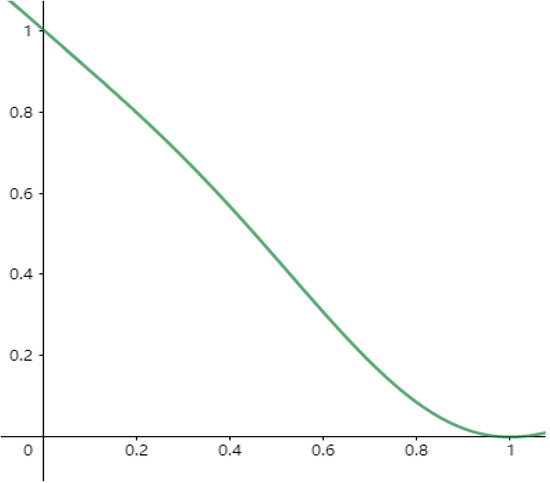 Hence, the condition of is , and the image of as is shown in Figure 4.