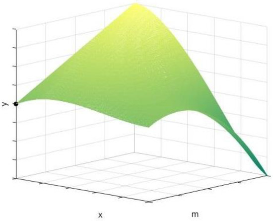 The partial derivative of the equation for the relative strength gap of the enterprise can be obtained as follows: , and the image of it as is shown in Figure 7.