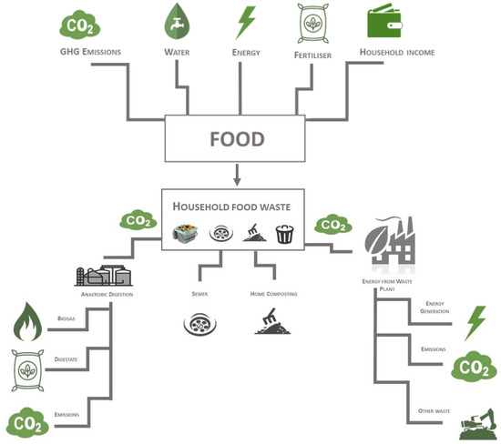 For the policy maker at the city level, the existing literature does not provide enough detail to model the trade-offs for each policy option tailored to the local context. Our study is unusual in that it attempts to advance a methodology for estimation of the magnitude of impact of improved food waste recycling with interventions to minimise food waste generation at the municipal level. Inspired by the food–energy–water nexus approach, we consider the food cycle in totality, using monetary valuation of environmental impacts to quantify the scale of these effects [24].