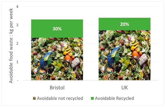 Data on quantities of collected waste are available from www.wastedataflow.org (accessed on 22 March 2022). Restrictions apply to the availability of data relating to composition of avoidable and unavoidable food waste in Bristol. Data were obtained from Bristol Waste Company and are available from the authors with the permission of Bristol Waste Company and Resource Futures.