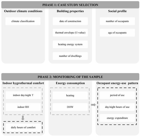 The selection of the case study and the sample was made based on the following indicators: outdoor climate conditions, building/housing properties and social profile.