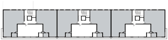 A sample of 15 dwellings was selected for the analysis of the indicators. These dwellings correspond to 3 social profiles found in the INE classification in the Household Budget Survey [64]: couple with 3 or more children (P1, 5 dwellings), single adult with children (P2, 5 dwellings), single person (P3, 5 dwellings). The results are shown as the average for each profile, so that differences and patterns can be detected in each profile. Data protection and anonymity associated with each household is also ensured. All of the information is considered confidential; all of the personal values and any possible identification of the dwelling has been excluded. Figure 2 shows the floor plan of the building under study. The 15 dwellings present the same typology, oriented North-South.