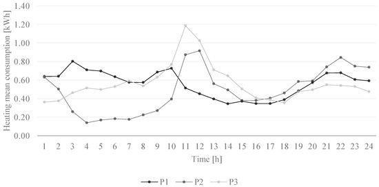The International Energy Agency has identified people’s behaviour as one of the main drivers of energy use in buildings [72]. However, the preferences, needs and behaviours of residents are not constant. In this sense, behavioural profiles may vary over the lifetime of the building according to different factors [73]. This identification of the impact of user behaviour on the energy efficiency of buildings has been studied in different European projects such as COMPASS [11] and MOBISTYLE [10]. To this end, to find patterns of behaviour of each profile during the period analysed, this study analysed the monitored data of energy consumption throughout the day, differentiating between the hours of the day or night that are consumed, as well as their frequency and level of consumption. Heating and DHW expenditures were also considered according to data used by the public administration [69], allowing us to compare both consumptions in equal units to establish a pattern of which represents the highest expenditure for each profile.
