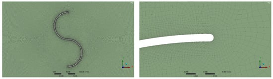 General structure of the mesh (left) and details of the mesh near the profile walls (right).