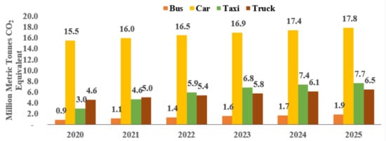 - Azam, M.; Othman, J.; Begum, R.A.; Abdullah, S. NGM Nor Energy consumption and emission projection for the road transport sector in Malaysia: An application of the LEAP model. Environ. Dev. Sustain. 2016, 18, 1027–1047. [Google Scholar] [CrossRef]