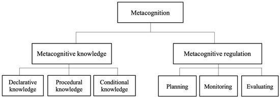 Metacognition is not new, as it is historically rooted in educational research from about four decades ago. The definition of metacognition was first delivered by Flavell, a developmental psychologist. He defined metacognition as an individual’s ability to monitor, regulate, and orchestrate their cognitive processes to attain a particular objective [8,9]. Later this concept was adjusted [7,8,10,11,12], such that metacognition generally consisted of two main components: (a) metacognitive knowledge and (b) metacognitive regulation. In addition, metacognition is defined as how individuals monitor and control their cognitive processes [13]. Although the definition of metacognition and its components is not universally defined, educators are commonly aware that metacognition is a desirable and important attribute for individuals who aim to be successful and lifelong learners [14].