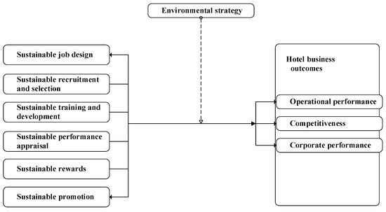 A research gap emerged from this study in terms of knowing how and which SHRM practices could affect work-related outcomes, and whether these practices result in desirable hotel business outcomes. Therefore, this paper revealed how and when SHRM practices influence the hotel business outcomes: operational performance (OP), competitive advantage (C), and corporate performance (CP) using the moderation mechanism of environmental strategy (ES).