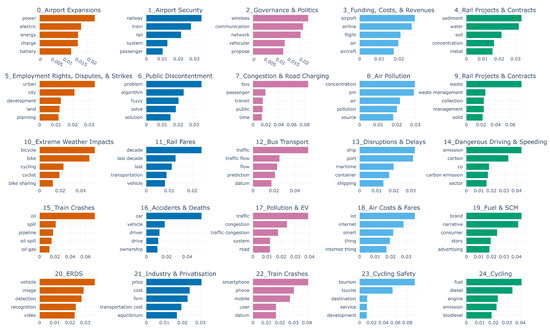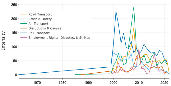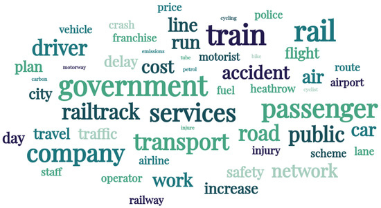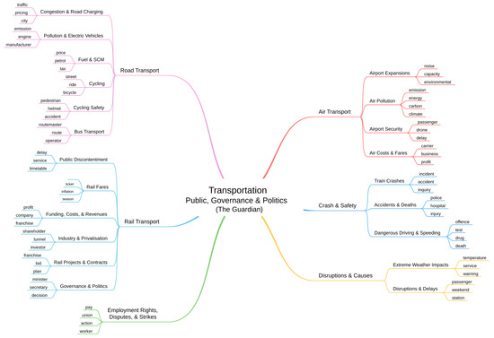 The newspaper dataset that we built to discover parameters for public, governance, and political aspects of transportation is collected from a UK-based newspaper, The Guardian. We collected all the articles from The Guardian newspaper that contain the word “transport” (in the title of the news, the full text of the news article, or the meta-information about the article) and found a total of 14,381 unique articles dated between September 1825 [38] and January 2022 [39]. We discovered a total of 25 parameters from The Guardian dataset and grouped them into 6 macro-parameters, namely Road Transport; Rail Transport; Air Transport; Crash and Safety; Disruptions and Causes; and Employment Rights, Disputes, and Strikes.