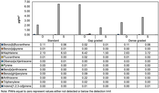PAHs of gaseous emissions (µg/m3) at the paver (D: driver’s seat; S: screed).