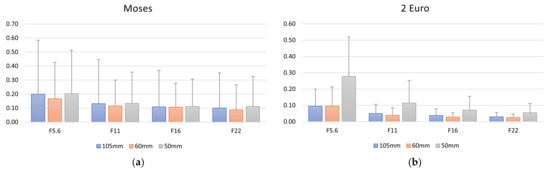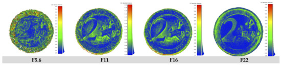 - Webb, E.K.; Robson, S.; Evans, R. Quantifying depth of field and sharpness for image-based 3d reconstruction of heritage objects. ISPRS Int. Arch. Photogramm. Remote Sens. Spat. Inf. Sci. 2020, 43, 911–918. [Google Scholar] [CrossRef]