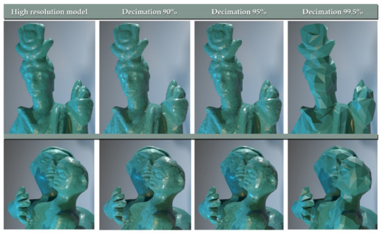- Klein, R.; Liebich, G.; Strasser, W. Mesh Reduction with Error Control. In Proceedings of the IEEE Visualization Conference, San Francisco, CA, USA, 17 October–1 November 1996. [Google Scholar]