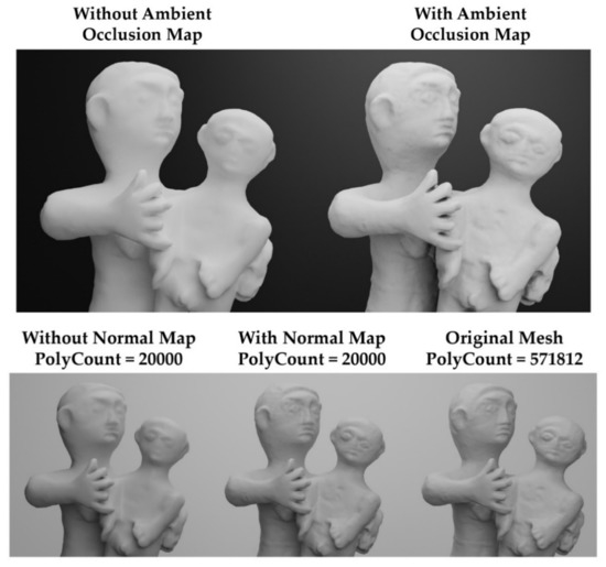 - Wang, Y.; Zheng, J.; Wang, H. Fast Mesh Simplification Method for Three-Dimensional Geometric Models with Feature-Preserving Efficiency. Sci. Program. 2019, 2019, 4926190. [Google Scholar] [CrossRef]