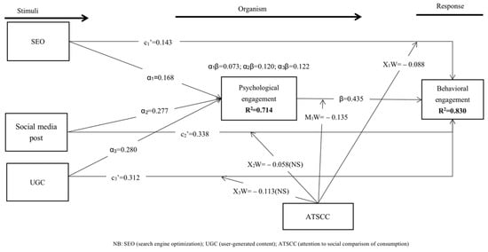 | H9c | Moderated UGC→BE | −0.113 | 0.715 (NS) | −0.423→ 0.198 | Not supported |