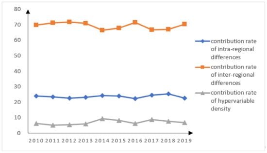 Decomposition of regional differences in green development levels from 2010 to 2019.