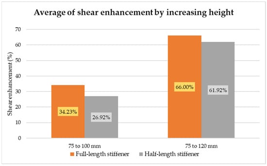 Average of shear enhancement by increasing the height of stiffened shear connector.
