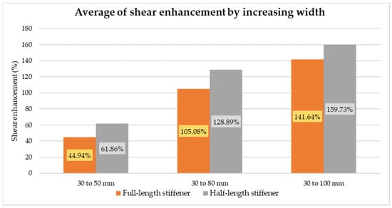 Average of shear enhancement by increasing the width of stiffened shear connector.