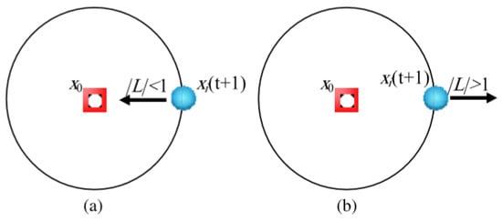 If |L| < 1 corresponds to the stability mode as displayed in Figure 4A, various CP vectors around the equilibrium price x0 are achieved considering the current price vector through the adjustment of the weights α and β. In this case, we can indicate that with the help of this algorithm, each market will be capable of updating all of its CPs in the neighborhood of the current CPs and mimicking the stability mode depicted in Figure 2A. Such a mechanism puts a focus on exploitation and gives the SDO algorithm encouragement for searching at a local level. As can be observed in Figure 4B, |L| > 1 corresponds to the instability mode, which makes the CP vector within any market capable of moving to make a simulation of the instability mode displayed in Figure 2B. Such a mechanism is concentrated upon exploration, and because of this mechanism, SDO has to perform a global search.