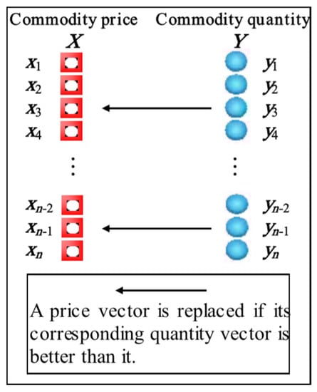 When both the CP and CQ vectors get updated in each iteration, they are assessed using their corresponding arrays. In case the fitness value of the ith CQ vector is better than the fitness value of the ith CP vector, the ith CP vector is changed with this quantity vector as a chosen solution. The mechanism of this solution replacement is depicted in Figure 6.