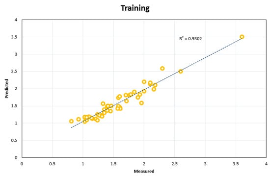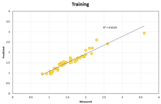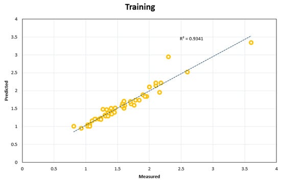 The neural network is developed based on experimental data, and this way, it can present appropriate solutions for different problems. New techniques have been developed to solve problems with large and complex data, based on intelligent models and metaheuristic algorithms. Various applications of these models have been highlighted in civil, mining, and petroleum engineering [,,,,,,,,,,,,,,,,,,,,,,,,,,,,,,]. However, algorithms based on artificial neural networks (ANN), decision trees, hybrids, adaptive neuro-fuzzy inference system (ANFIS) models, among others, are recent examples of predictive models that are developing and increasing efficiency in different engineering fields [,]. Optimization algorithms such as particle swarm optimization (PSO), firefly algorithm, imperialism competitive algorithm (ICA), genetic algorithm (GA), etc., are used in the development of forecasting models [,,,,,,,,,,,,,,,]. Over time and by changing the conditions, neural networks can cover these changes and match solutions. Using a neural network, theoretical, experimental, empirical data, or a combination of them, can be analyzed effectively and with sufficient accuracy [].