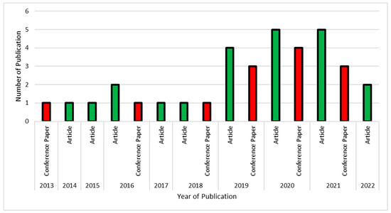 The final gathered articles were focused on digitalization in the construction industry, where the distribution of the published articles year-wise is presented in Figure 5. It can be observed that, over time, the rate of workability in digitalization from a construction perspective has increased. Out of 35 gathered articles, 13 are conference papers while 22 are research articles. Table 1 demonstrates the focused area of each gathered article with the author’s name, published year, and the citation that has been secured to date.