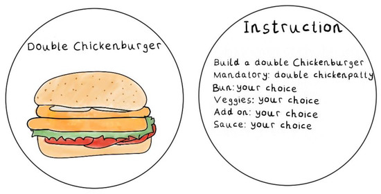 The 24 burger cards consist of a front and back side (Figure 8). The front side shows the name of the burger and its drawing. On the back is an instruction on how to build the burger.