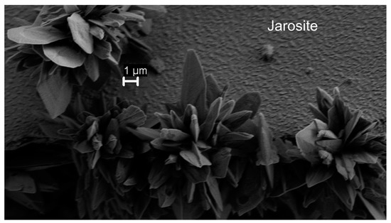 In both study areas a wide variety of sulfates were detected (Figure 4). This is due to the fact that BFCTs contain Fe-sulfides and carbonates, which, after being abandoned for decades, undergo several geochemical and microbiological reactions in the presence of oxygen and water [62,63], resulting in the decomposition of several primary minerals present in coals (including several clays and oxides) due to the presence of sulfuric acid (from the degradation of Fe-sulfides). It should be noted that the greater abundance of sulfates in the Lauro Muller region is not accounted for by its older age compared to Siderópolis, but rather only by the abundance of primary minerals in this region.