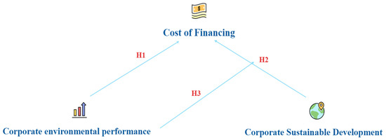 The existing literature focuses on the economic effects caused by environmental performance, and its economic effects pay more attention to enterprise innovation [9,10]. From the perspective of corporate financing costs, this paper discusses the impact of environmental performance on corporate financing constraints, which enriches the research on the economic consequences of environmental performance. At the same time, the relationship between sustainable development and corporate financing constraints has always been an important topic of concern for scholars, but existing research only focuses on the relationship between debt heterogeneity and property rights, and few studies discuss the relationship between sustainable development and financing costs [11]. This paper studies the influencing factors of financing cost constraints from the perspective of sustainable development. It expands the research on influencing factors of corporate financing constraints. To sum up, the important research questions of this paper are as follows: 1. Can corporate environmental performance reduce financing costs? 2. Can sustainable development reduce financing costs? 3. Is there a synergy between sustainable development and environmental performance on corporate financing costs?