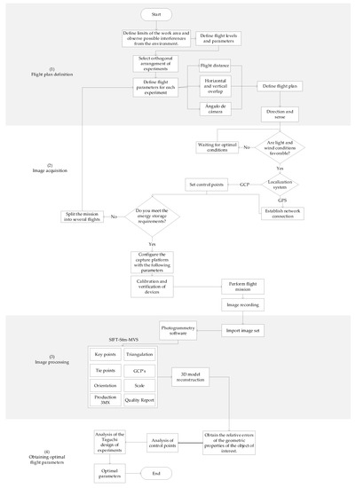 28]. To find an adequate ratio between image quality and efficiency, the UAV operator has a set of flight parameters to adjust, which include distance, capture angle, flight speed, and overlap between captured photographs, among other technical parameters of the sensor, such as International Organisation of Standardisation (ISO) values, shutter speed and shutter aperture [