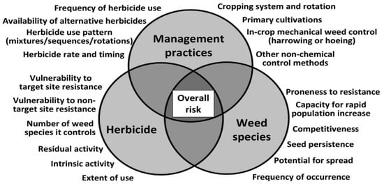 - Moss, S.; Ulber, L.; den Hoed, I. A herbicide resistance risk matrix. Crop Prot. 2019, 115, 13–19. [Google Scholar] [CrossRef]