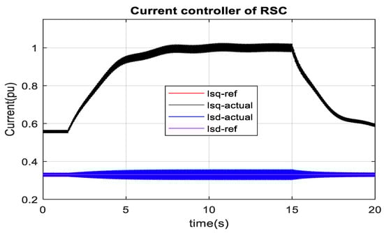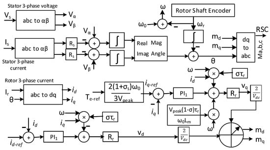 Reactive current of RSC could be controlled by the id, but magnetizing reactive power drawn from the stator voltage remains constant. Therefore, based on the value of id, DFIG can work as a unity, lagging, and leading power factor generator. The electromagnetic torque: