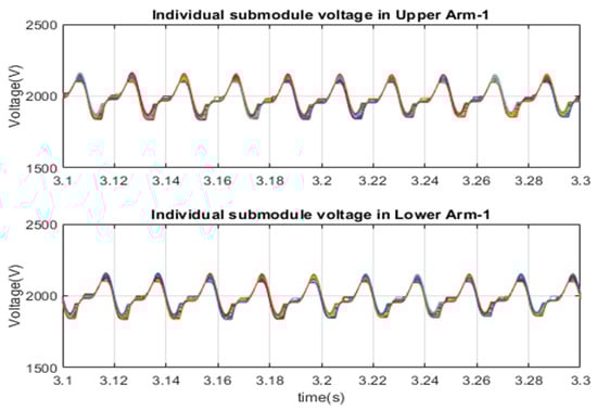 The MMC is the fundamental unit of the VSC-HVDC transmission network. Figure 11 and Figure 12 show the equivalent circuit for the MMC1 and MMC2, respectively. Circulating arm current and submodule balancing control are required from the outer loop and outer current control loop.