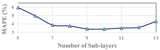 Day-ahead prediction performance of the proposed model with different sublayer numbers.