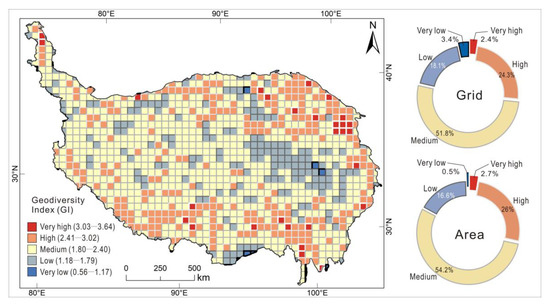 Grid is still an effective tool for the quantitative assessment of geodiversity. Its advantage is that it can be adjusted according to the size of the study area and the scale of the data. However, the study area is often irregular. Grids at the edge of the study area are reduced in size by cropping, which will lead to the loss of geodiversity within the remnant grids. This is the reason why some grids with very low GI occur at the edge of the TP. This problem can be avoided if the fishnet is covered first for geodiversity assessment, and then the nets are clipped by the study area boundaries. However, the TP has a long national boundary, and there are still limitations in the standard and acquisition of data.