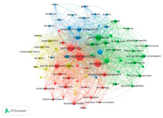 Articles on sustainable entrepreneurship worldwide (retrieved from WoS database) in the field of business and management (2001 to November 2021). Source: The authors, with data retrieved from the WoS database.