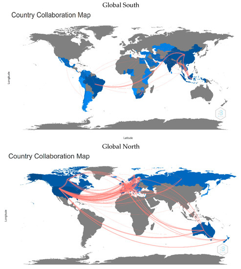 Academic collaboration between Global South countries and between Global North countries. Source: The authors, using Biblioshiny software.