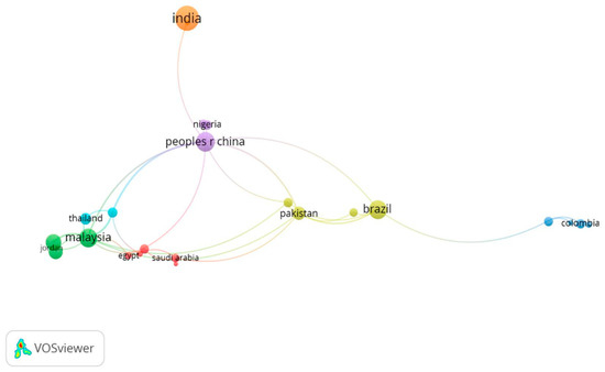 Again, the dominance of the Global North is evidenced. As can be seen in Figure 6, the highest citation number from a Southern country (Malaysia) does not reach even the lowest citation number from a Northern country (Italy). Although India and China have made the highest contribution, Malaysia is the most cited country, followed by China. In the Global North, the USA, England, and Germany are not only the most productive but also the most cited countries.